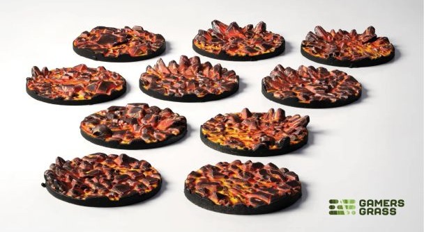 Темные трещины раздвигаются, и из-под земли вырываются раскаленные огни. Отправляйтесь в адские пейзажи и хаотичные миры с темой «Расплавленная лава». Эти накладки идеально подходят для легкой установки миниатюр на подставки, превращая ваших героев в опасных героев, отправляющихся в адские приключения. Оживите свои настольные варгеймы всего одним шагом!