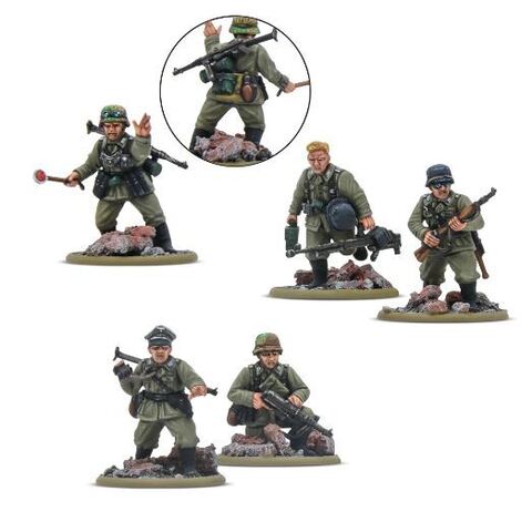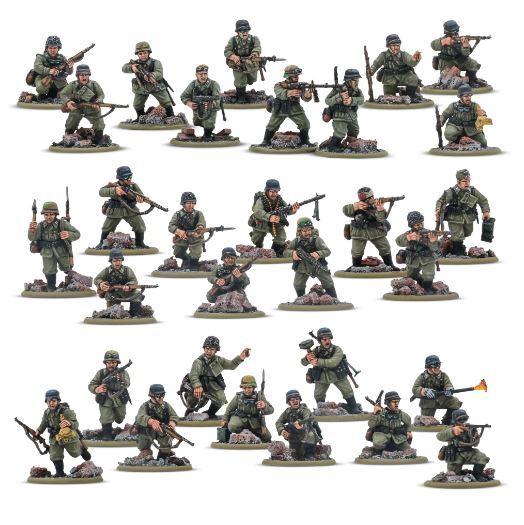 Жестокие сражения Восточного фронта и ожесточенные городские бои за руины Сталинграда превратили неопытных немецких новобранцев в закаленных ветеранов всего за неделю. Закаленные в горниле сражений, эти люди научились выживать и сражаться в самых суровых условиях, которые только можно себе представить, и их опыт был бесценен в бою. Используя широкий спектр специального оборудования и уделяя особое внимание ближнему бою, эти немецкие ветераны-пехотинцы являются силой, с которой нужно считаться на настольной игре Bolt Action.