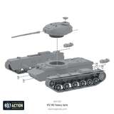 В коробке находится один тяжелый танк КВ-85 из металла и смолы, кубик приказа Bolt Action, декали, карта статистики Bolt Action: Third Edition, а также карта данных танка Achtung Panzer! и жетоны. Модели предоставляются в разобранном и неокрашенном виде.