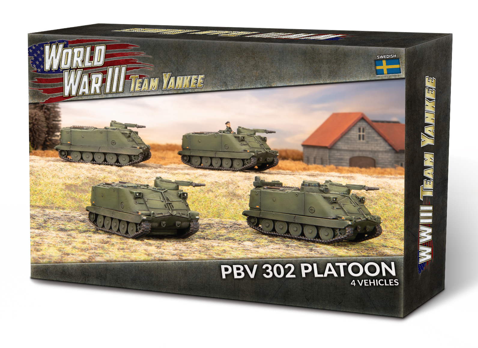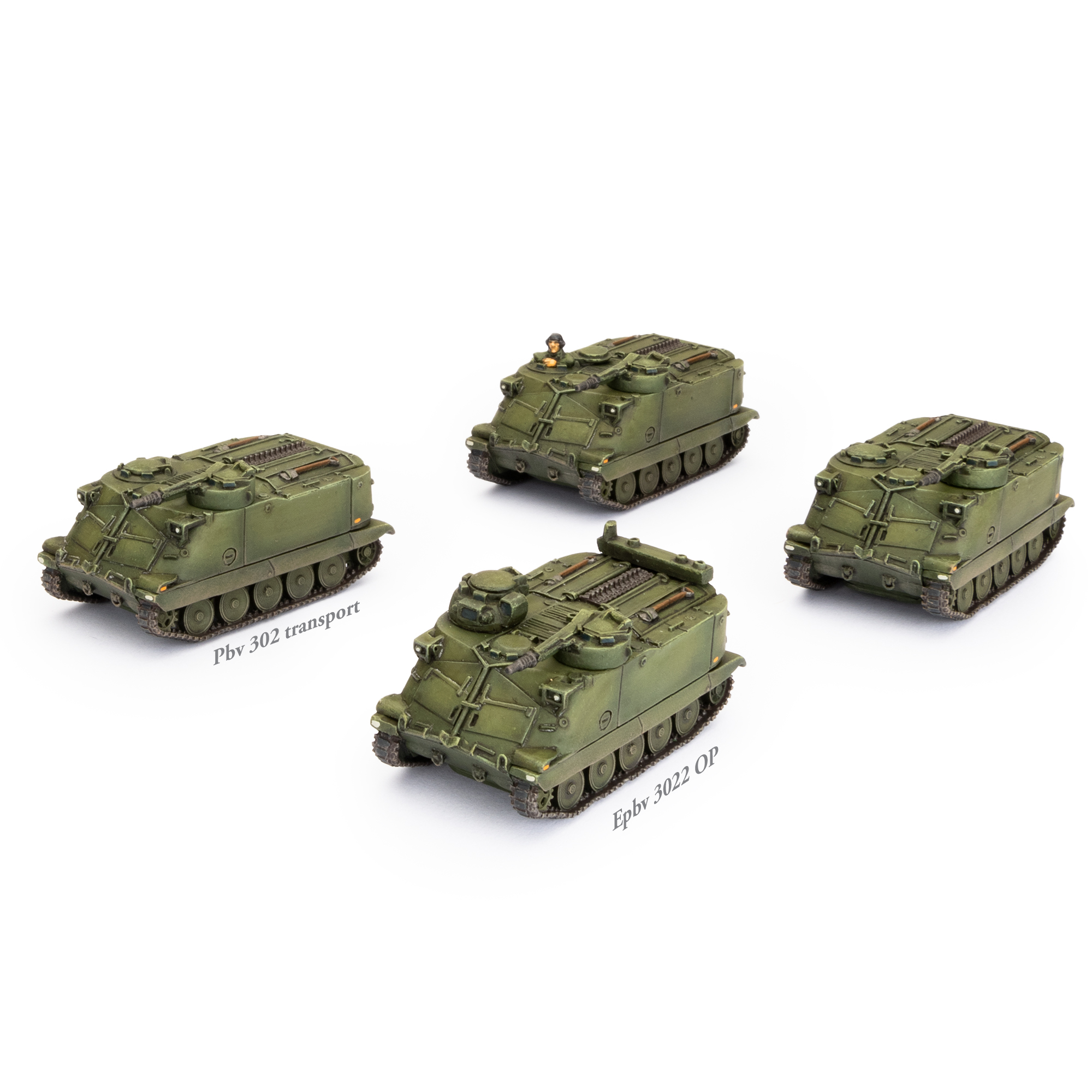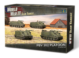 Бронемашина Pansarbandvagn 302 (Pbv 302) — это высокомобильный бронетранспортер, построенный по шведским требованиям. Pbv 302 имеет широкие гусеницы и высокое соотношение мощности к весу, а также исключительно хорошую проходимость по бездорожью, и низкое давление на грунт позволяет ей действовать как на летних болотах, так и на зимних снегах. Она вооружена 20-мм автоматической пушкой (лицензионная версия французской Hispano-Suiza типа 804), установленной в одноместной башне на левой стороне крыши корпуса. На борту находится пехотное отделение, способное вести бой через два больших люка на крыше, хотя стандартная процедура предполагает высадку десанта через две боковые двери в задней части Pbv 302.