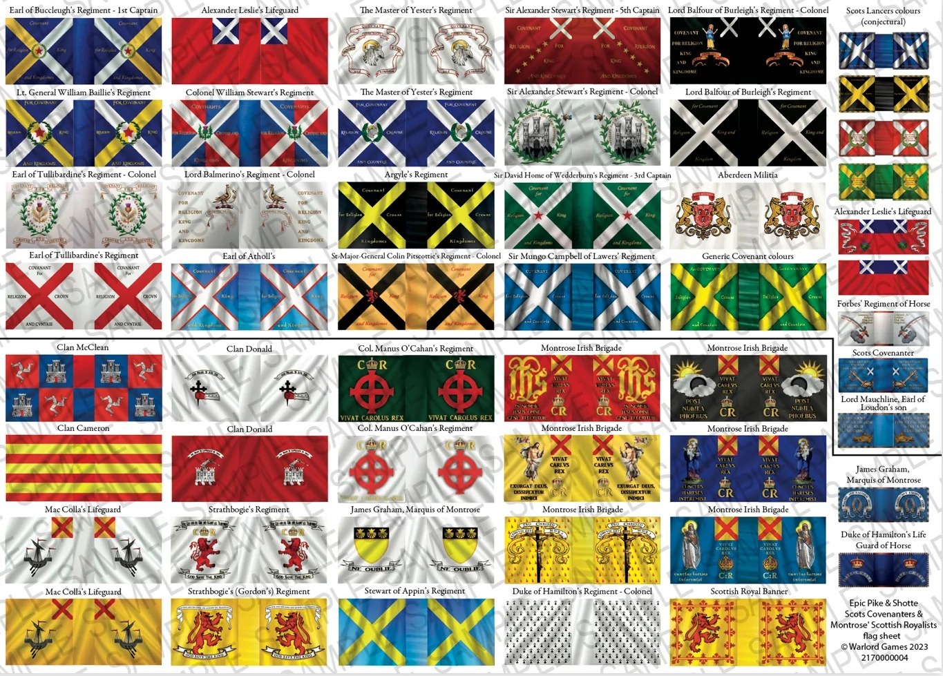 Армия шотландских роялистов Монтроза всегда была фаворитом варгеймеров. Небольшая армия, почти полностью полагавшаяся на пехоту, обычно уступала противнику в численности, но редко терпела поражение на поле боя. Ирландская бригада и горные кланы придают армии особый колорит, а ограниченный доступ к хорошей кавалерии и артиллерии делает её несколько нетрадиционной, но тем более культовой.