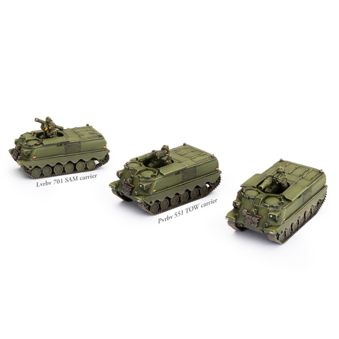 Pansarvärnsrobotbandvagn 551 ( Pvrbv 551) — это истребитель танков, оснащенный усовершенствованной противотанковой управляемой ракетой TOW. Pvrbv 551 — это переоборудованная из старых самоходных артиллерийских установок Infanterikanonvagn 102/103. На старом шасси была построена новая надстройка с установленными новым двигателем и трансмиссией. Экипаж состоит из четырех человек: командир и водитель располагаются в передней части машины, а наводчик и заряжающий — в средней части корпуса под двумя большими люками на крыше.