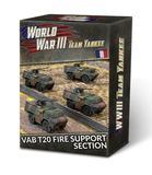 Боевая машина огневой поддержки VAB T20 Section d'Appui-feu , вооруженная 20-мм автоматической пушкой, обеспечивает дополнительную огневую мощь и противовертолетное прикрытие пехоты. VAB T20 устанавливает 20-мм пушку на вращающейся башне для круговой огневой поддержки.