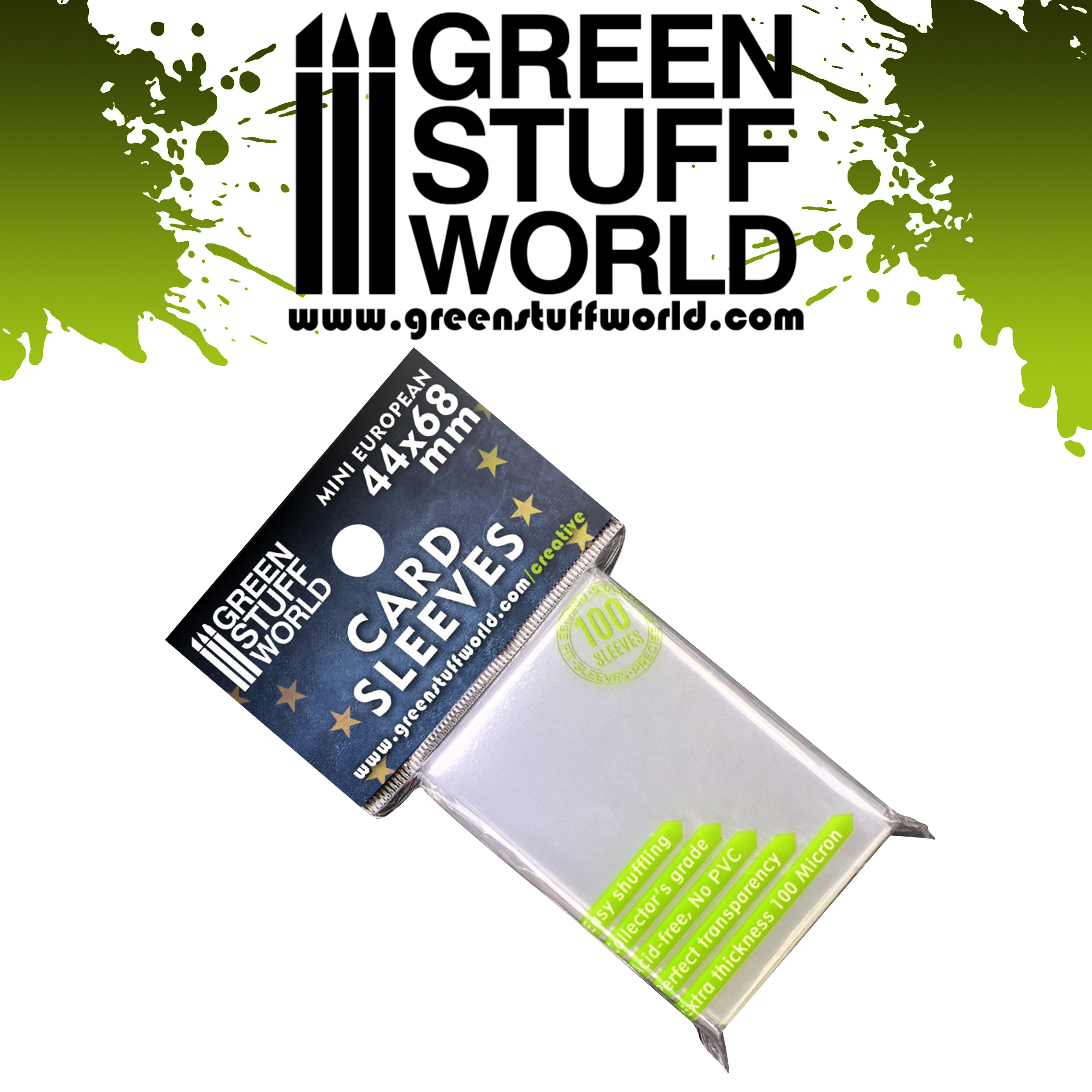 Профессиональные глянцевые протекторы для карт с прочными швами и толщиной 100 микрон для полной защиты. Абсолютно прозрачные, с текстурированной обратной стороной, что облегчает их использование при перемешивании и раздаче карт.