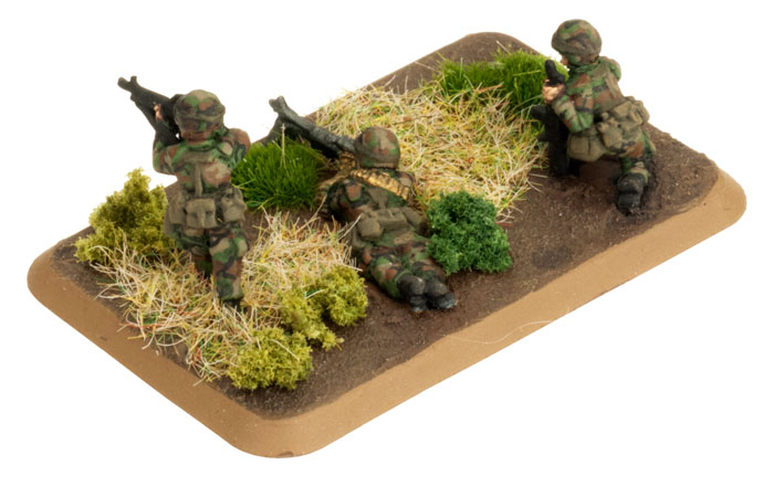 Стрелковый взвод состоит из трех стрелковых отделений и штаба взвода. Каждое стрелковое отделение имеет командира отделения и разделено на три огневые группы по четыре человека: одна с автоматом M249, командир группы с винтовкой M16 и гранатометом M203, и два человека со штурмовыми винтовками M16. Штаб взвода состоит из командира взвода и трех человек, все со штурмовыми винтовками M16.