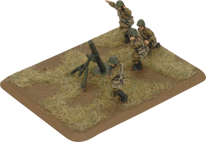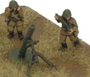 Когда тяжелые орудия артиллерийских батарей заняты другими делами, пехоте полезно иметь собственное оружие непрямого огня. 82-мм и 120-мм минометы могут быть так же хороши, как и более крупные орудия, в выкапывании пехоты из укрытий. Советские минометы имеют встроенные колеса, поэтому минометы могут быстро передвигаться, чтобы не отставать от пехоты, которую они поддерживают.