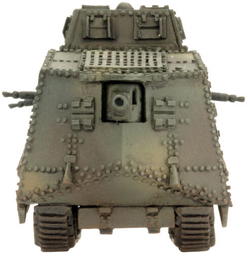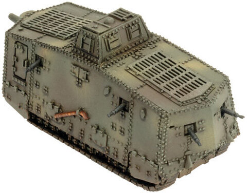 В результате получился танк А7В в форме коробки размером 7,3 х 3 м (24 на 10 футов) с двумя гусеничными установками, подвешенными под боевым отделением. Толщина брони составляла 30 мм спереди, 15 мм по бокам и 20 мм сзади. Вооружение состояло из одной 5,7-см пушки Максима-Норденфельта, направленной вперед, и шести пулеметов Максима, расположенных по бокам и сзади.