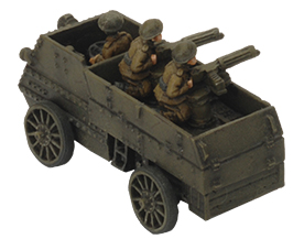Майор Раймон Брутинель, успешный французский бизнесмен, иммигрировавший в Канаду до начала войны, организовал и сформировал мобильное пулеметное подразделение на частные средства. Он организовал поставку бронированных грузовиков американской компанией Auto Car. Каждый Autocar представлял собой открытый сверху бронированный кузов с наклонной передней бронеплитой и откидными бортами. Пулеметы были установлены на опорах и могли вести огонь поверх бортов машины. Пулеметы также могли быть демонтированы для использования на земле.