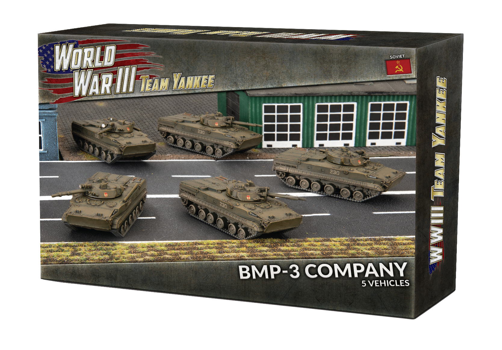 Советские мотострелковые роты, оснащенные БМП-3, или « Боевая машина пехоты 3», выполняют ту же задачу, что и их товарищи, оснащенные БМП-1 и БМП-2. Рота на БМП-3, предназначенная для движения в ногу с ведущими бронетанковыми соединениями, будет продвигаться вперед и спешиваться как можно ближе к цели. Пехота будет использовать стрелковое оружие, включая автоматы АК-74 и легкие пулеметы ПКМ, для подавления любой вражеской пехоты и штурма ее позиций.