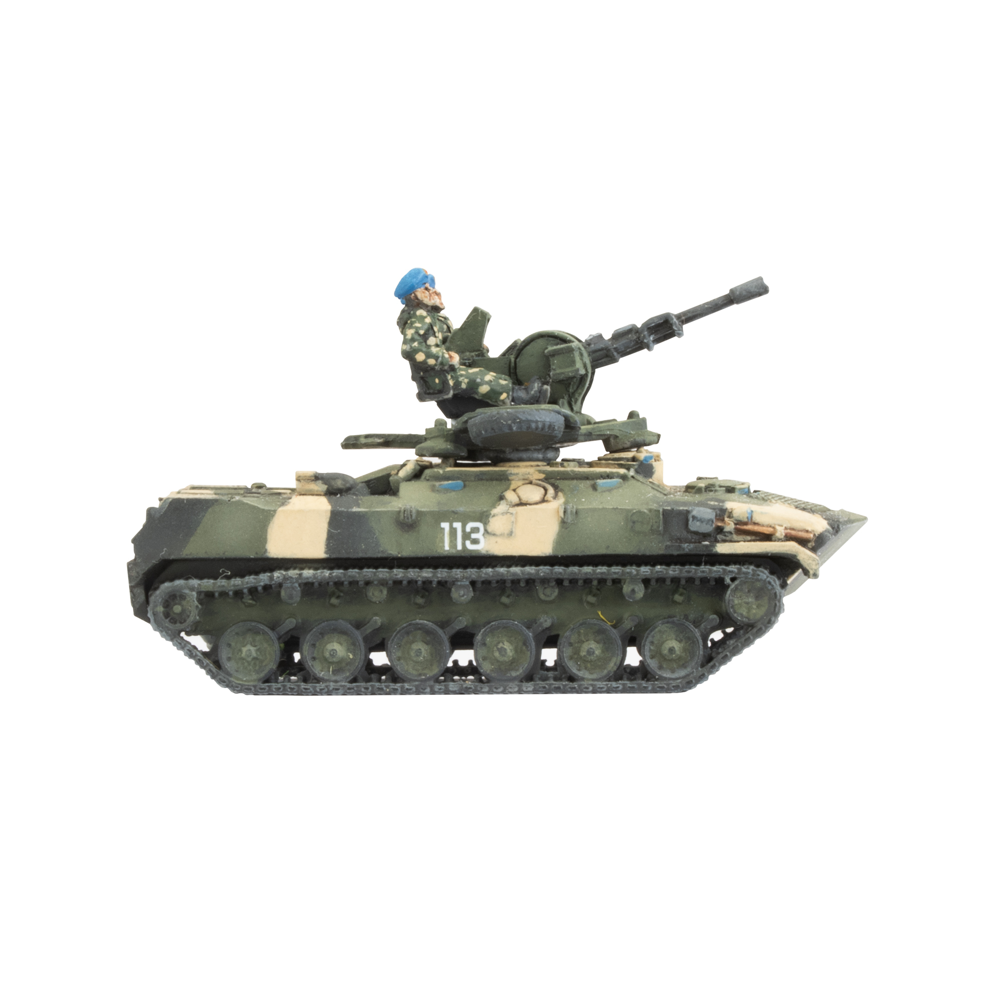 БТР-ЗД « Скрежет » ( ЗД означает «зенитная уставовка» , что означает «зенитная» для десантных войск) — это бронетранспортер БТР-Д, переоборудованный в зенитную машину. На верхней части корпуса он оснащён спаренной 23-мм зенитной пушкой ЗУ-23-2. Также его можно переоборудовать для установки двух переносных зенитных ракетных комплексов СА-14 «Гремлин» путём установки внутренних держателей для запасных ракет, а также внешних направляющих для размещения ПЗРК на правой стороне крыши десантного отделения.