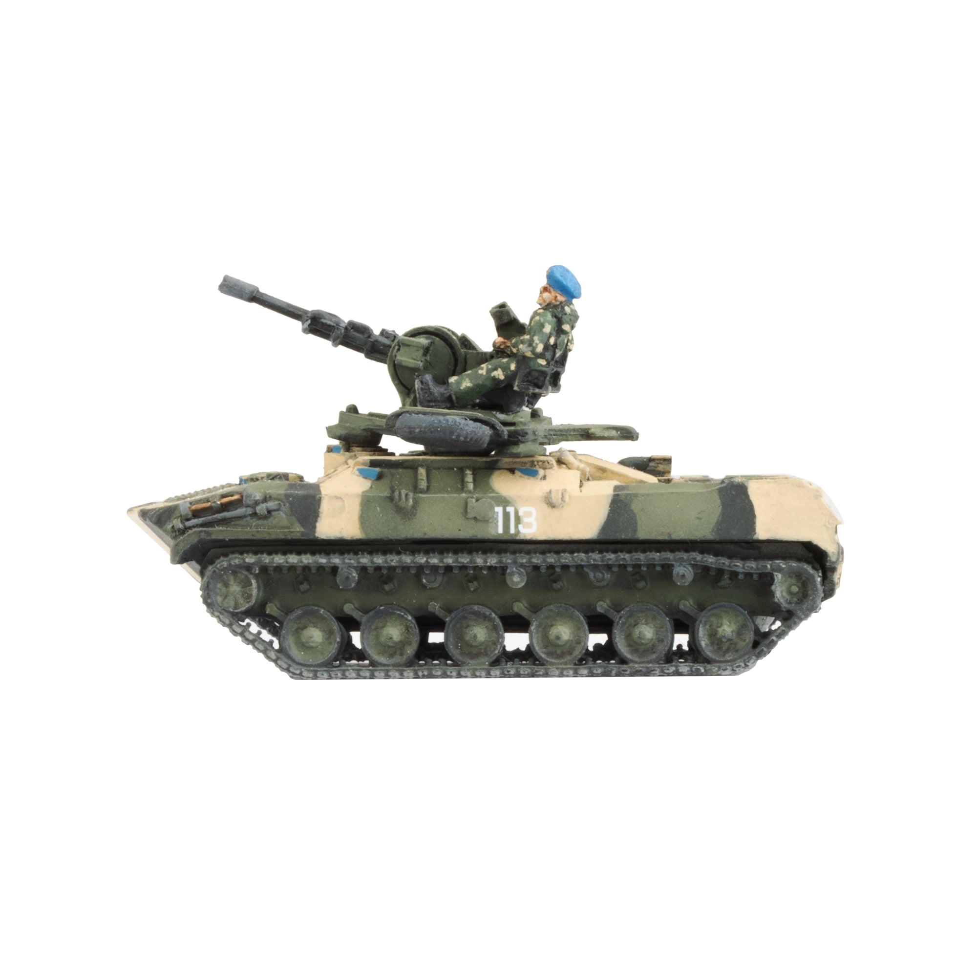 БТР-Д ( Bronetransportyor Desanta , или десантный бронированный транспортер) — это многоцелевой гусеничный бронетранспортер, созданный на базе БМД-1. Обычно он вооружен автоматическим гранатометом АГС-17 и используется для транспортировки тяжелых расчетов вооружения десантников.
