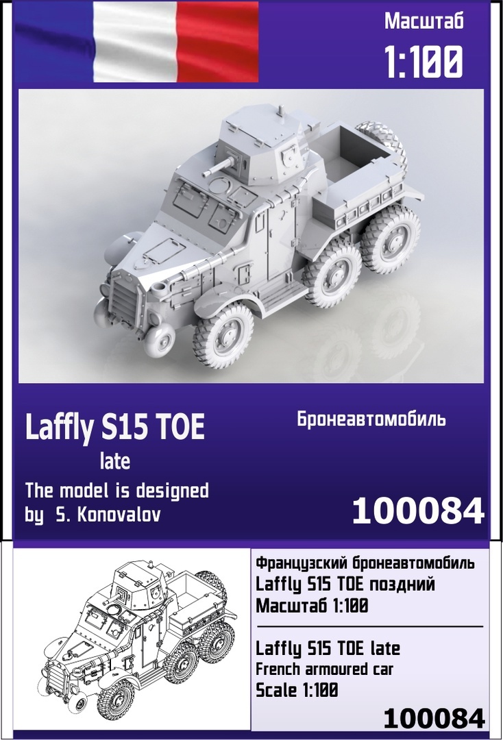 Модель Французский Бронеавтомобиль Laffly S15 TOE (поздний) (1/100)