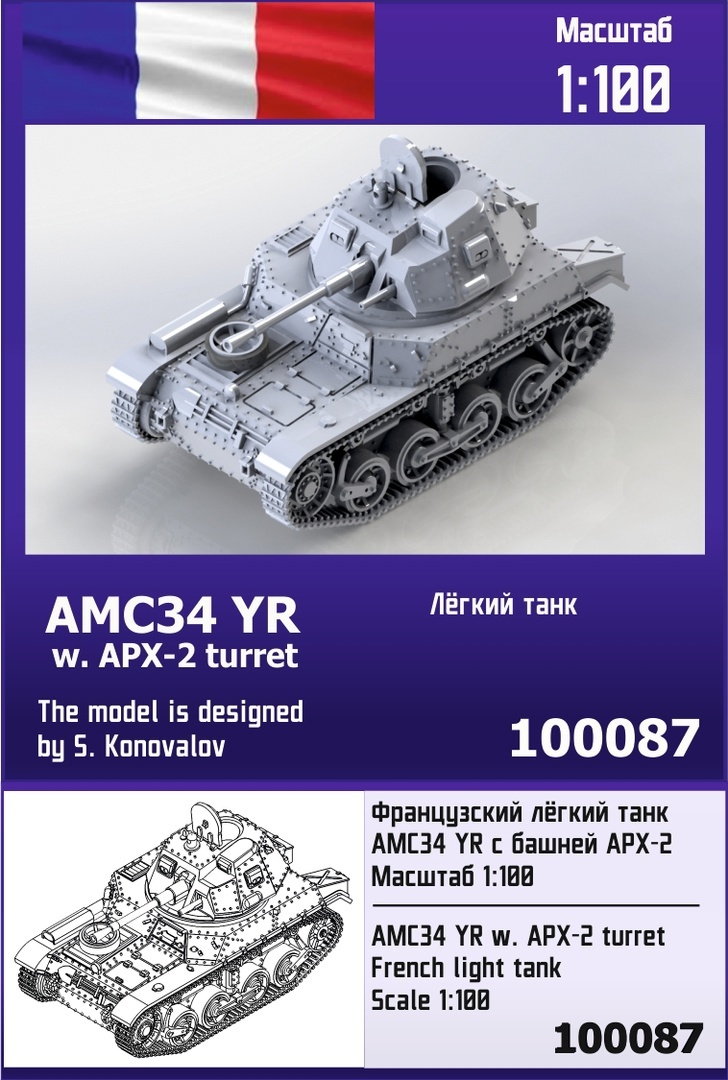Модель Французский Легкий Танк АМС34 YR с Башней APX-2 (1/100)