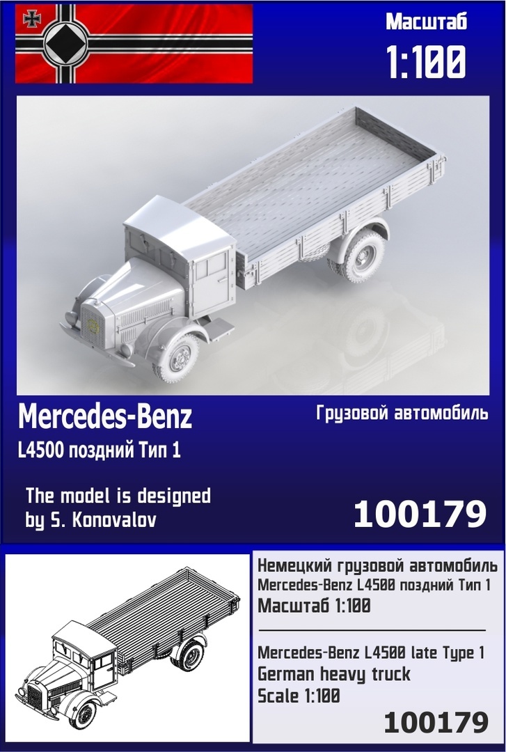 Модель Немецкий Грузовой Автомобиль Mercedes-Benz L4500 Поздний Тип 1 (1/100)