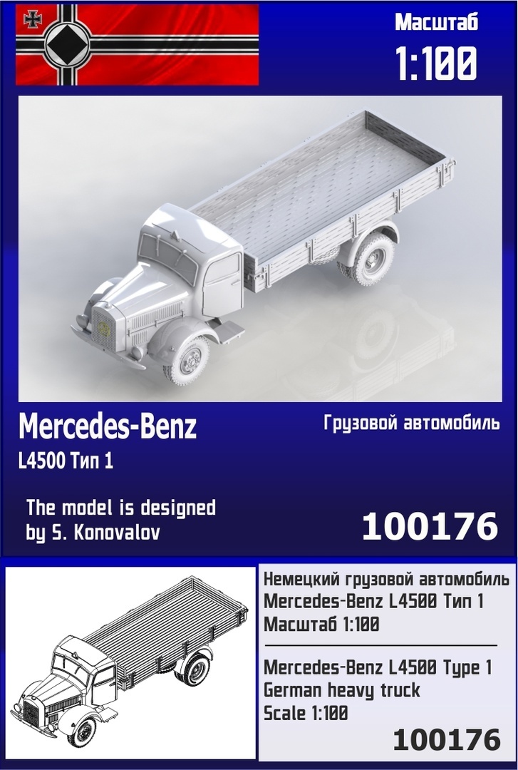 Модель Немецкий Грузовой Автомобиль Mercedes-Benz L4500 Тип 1 (1/100)