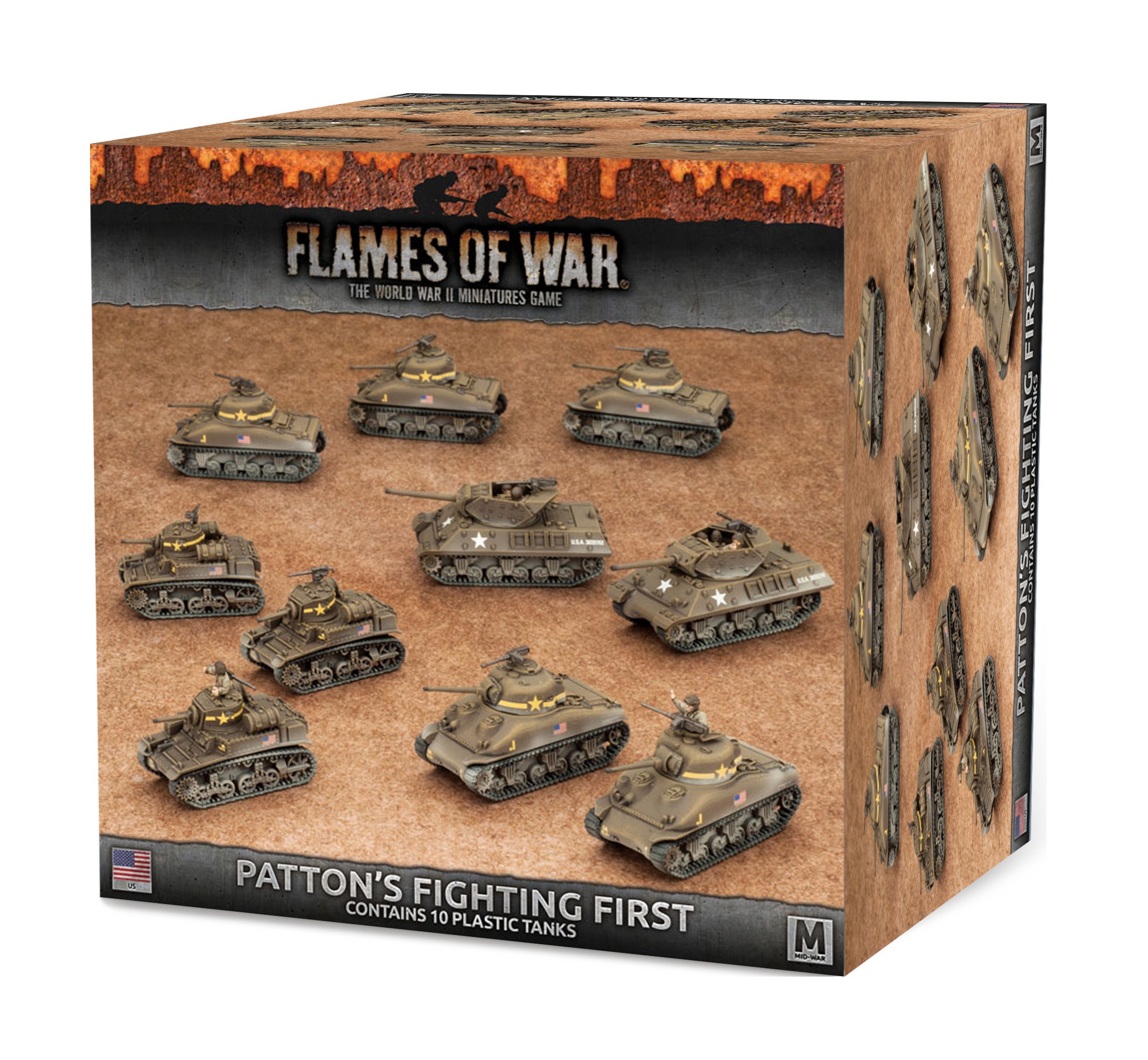 «Fighting First» Паттона — это полностью механизированная армия, которая охватывает все базы с тремя «Стюартами», готовыми рвануться вперед и создать неприятности, пятью «Шерманами», составляющими прочное и надежное ядро, и парой истребителей танков М10, которые могут сдерживать немецкие танки.