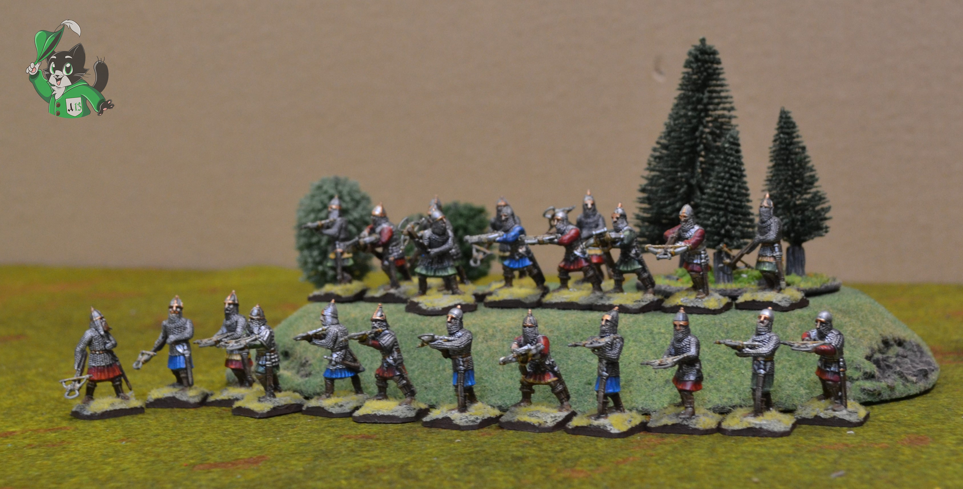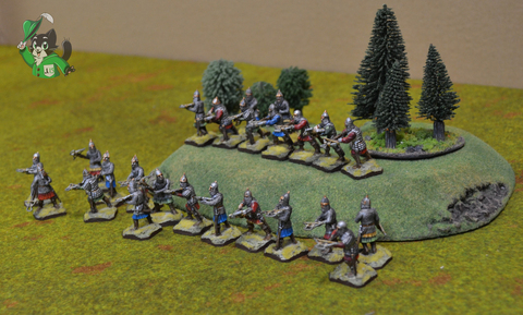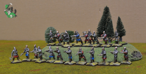 • х12 лучников, и/или до 12 вооруженных двуручными топорами, и/или до 6 вооруженных булавами, и/или до 28 вооруженных копьями.