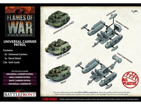 • х9 Универсальных транспортеров, которые могут быть собраны как транспортеры Universal Carrier (MG), MMG Carrier (Vickers) или Wasp (огнемет).