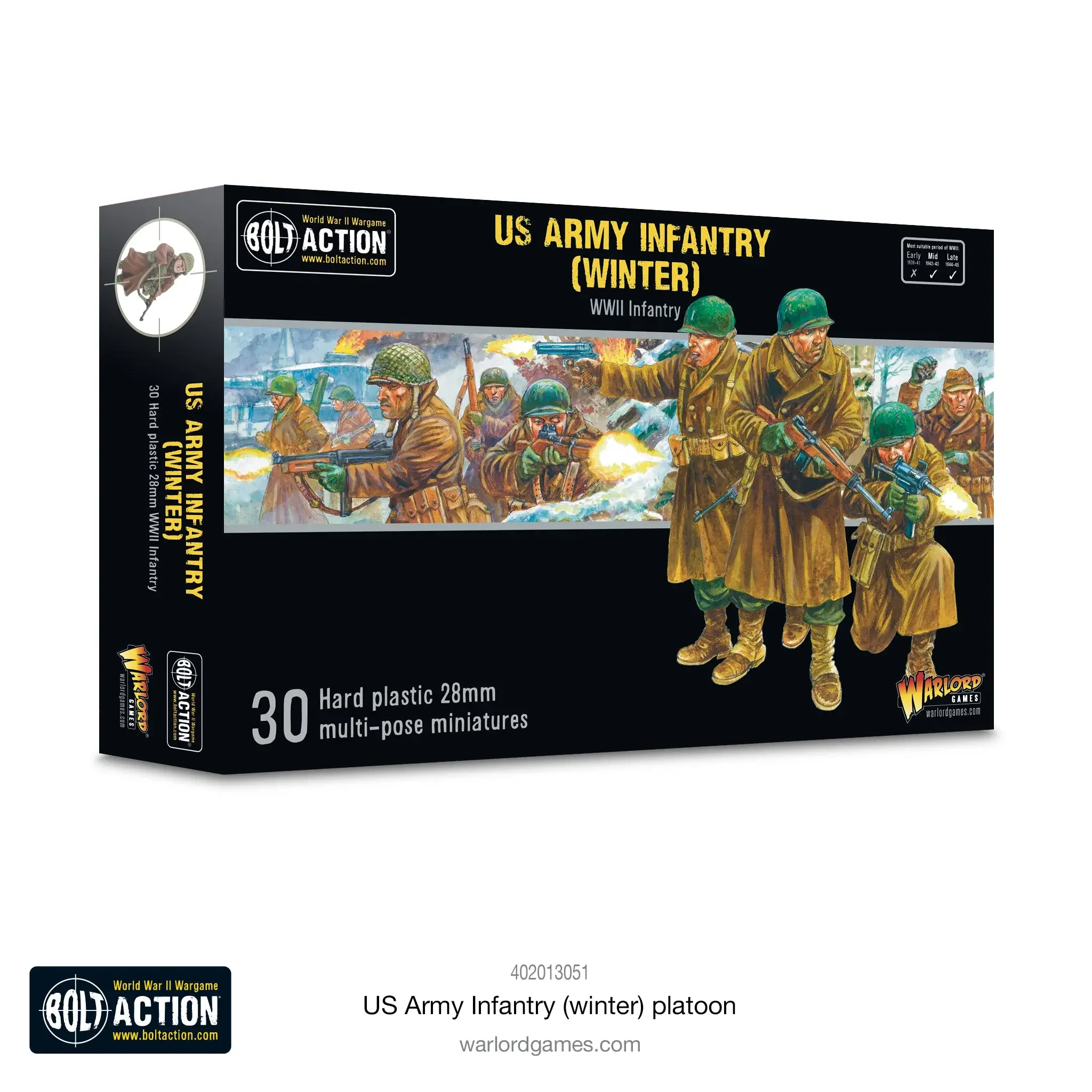 В этом наборе вы найдете все необходимое для создания 30 пехотинцев армии США в зимней форме, идеально подходящей для представления людей, сражающихся в холодных условиях битвы за выступ. Каждый литник содержит: Шесть динамичных тел в толстых зимних шинелях. Двенадцать уникальных вариантов голов, включая шлемы с маскировочными чехлами и сеткой. Широкий ассортимент оружия, включая культовую винтовку M1 Garand, пистолеты-пулеметы Thompson и «Grease Gun», противотанковую ракетную установку Bazooka и снайперскую винтовку Springfield — и многое другое! Множество дополнительных деталей, включая бинокли, бутылки с водой, подсумки для боеприпасов, винтовочные гранаты и многое другое. Вооруженные силы США фантастически просты в покраске, и эти люди в своих длинных зимних шинелях не являются исключением. С помощью всего нескольких цветов вы можете быстро и легко оживить свою коллекцию на столе, а потрясающая детализация на этих пластиковых литниках дает фантастическую возможность по-настоящему продемонстрировать свои навыки покраски моделей!