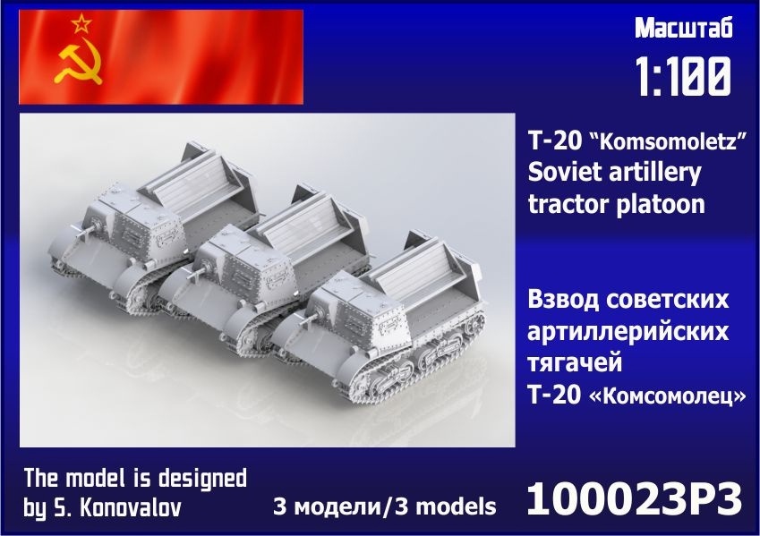 Модель Взвод Советских Артиллерийских Тягачей Т-20 "Комсомолец" (х3, 1/100)
